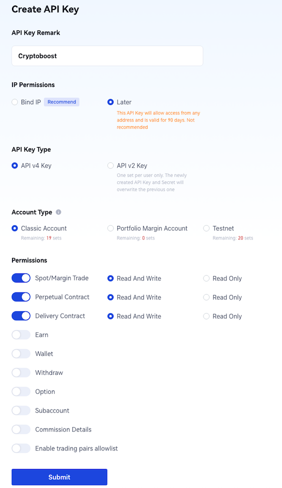Step 5: Select your exchange and paste API key in CryptoBoost